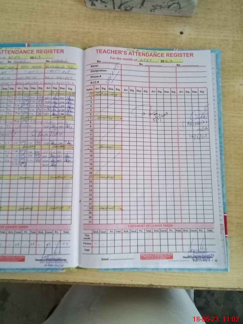 | Name: SA**** HU**** Designation: (School Headmaster's/Headmistress's) PST Phone/Cell Number: 03**** |