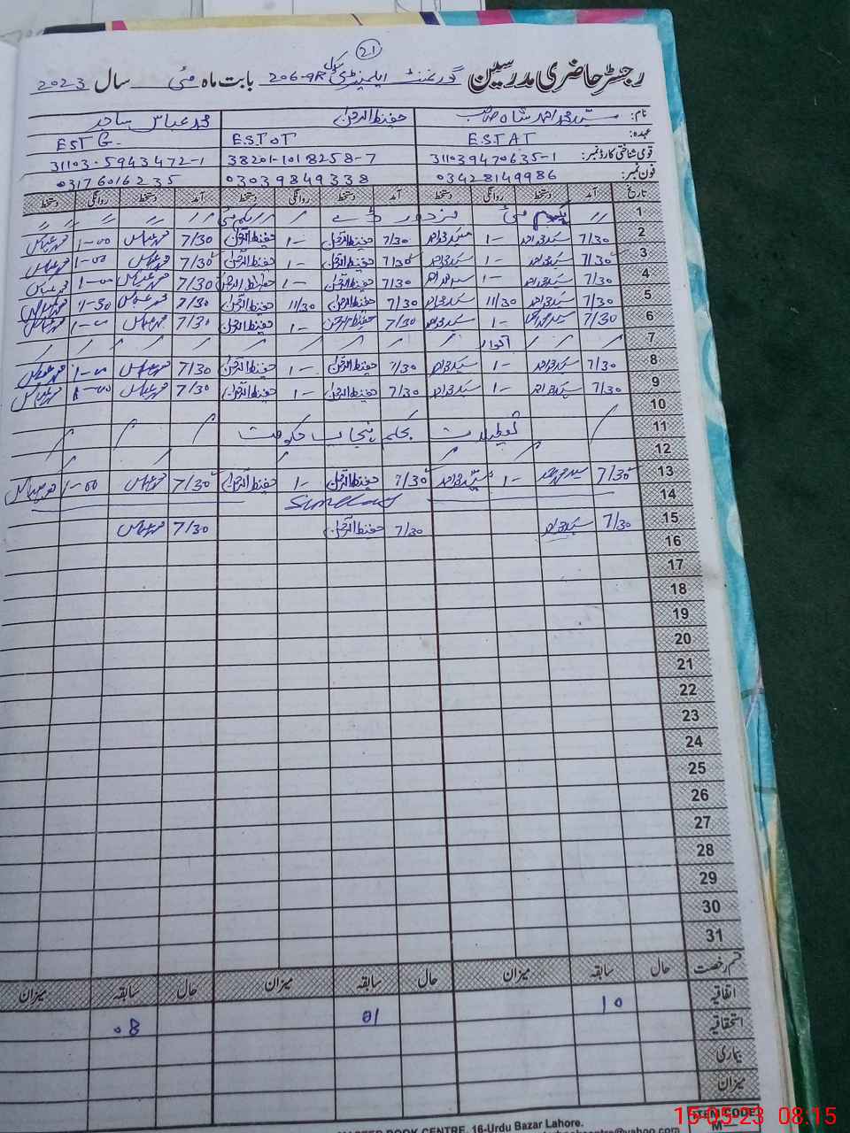 | Name: Ma**** Iq**** Designation: (School Headmaster's/Headmistress's) Sst Phone/Cell Number: 03**** |