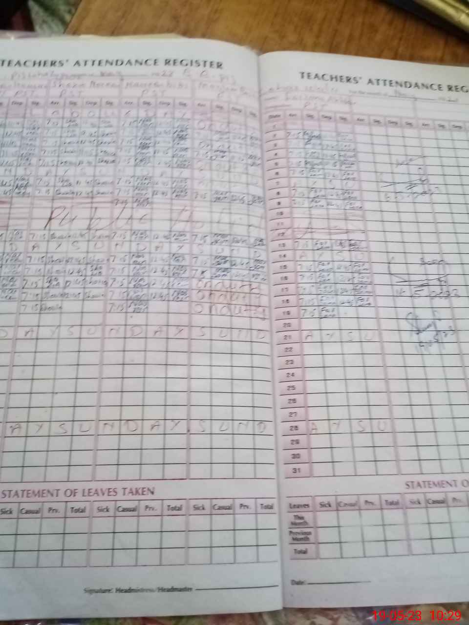 | 32**** | Ma**** Ba**** | PST | Regular | 0 | 0 | 0 | 0 | 0 | 0 | 0 | 0 | 0 | Exam Duty |