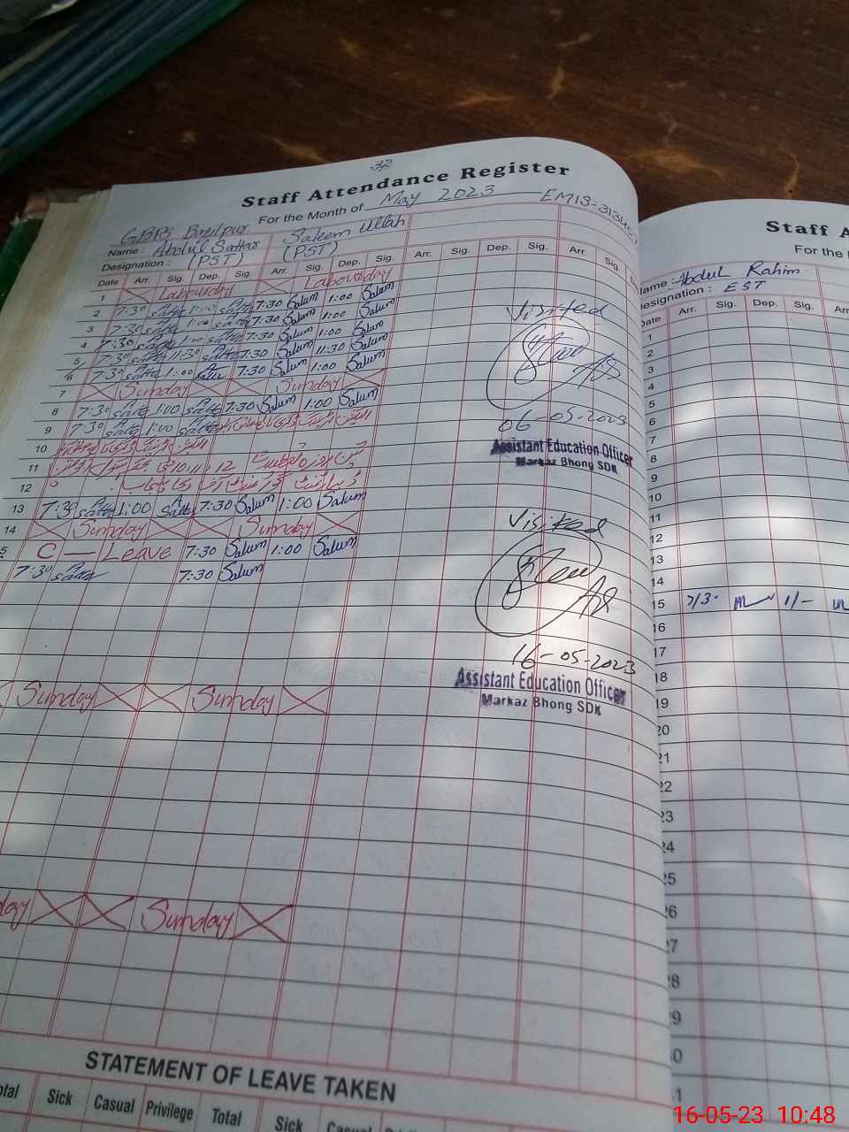 | Name: Sa**** Ul**** Designation: (School Headmaster's/Headmistress's) PST Phone/Cell Number: 03**** |