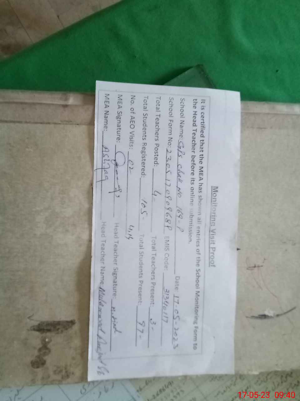 | EMIS Code: 31340117 | Name of School: GPS CHAK NO 169/P | |||