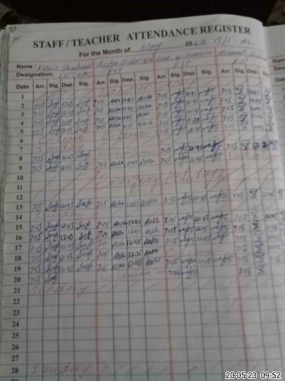 | Name: FO**** SH**** Designation: (School Headmaster's/Headmistress's) SST ARTS Phone/Cell Number: 03**** |