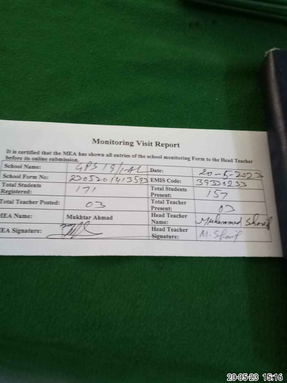 | EMIS Code: 39330233 | Name of School: GPS CHAK NO. 19/1-AL | |||
