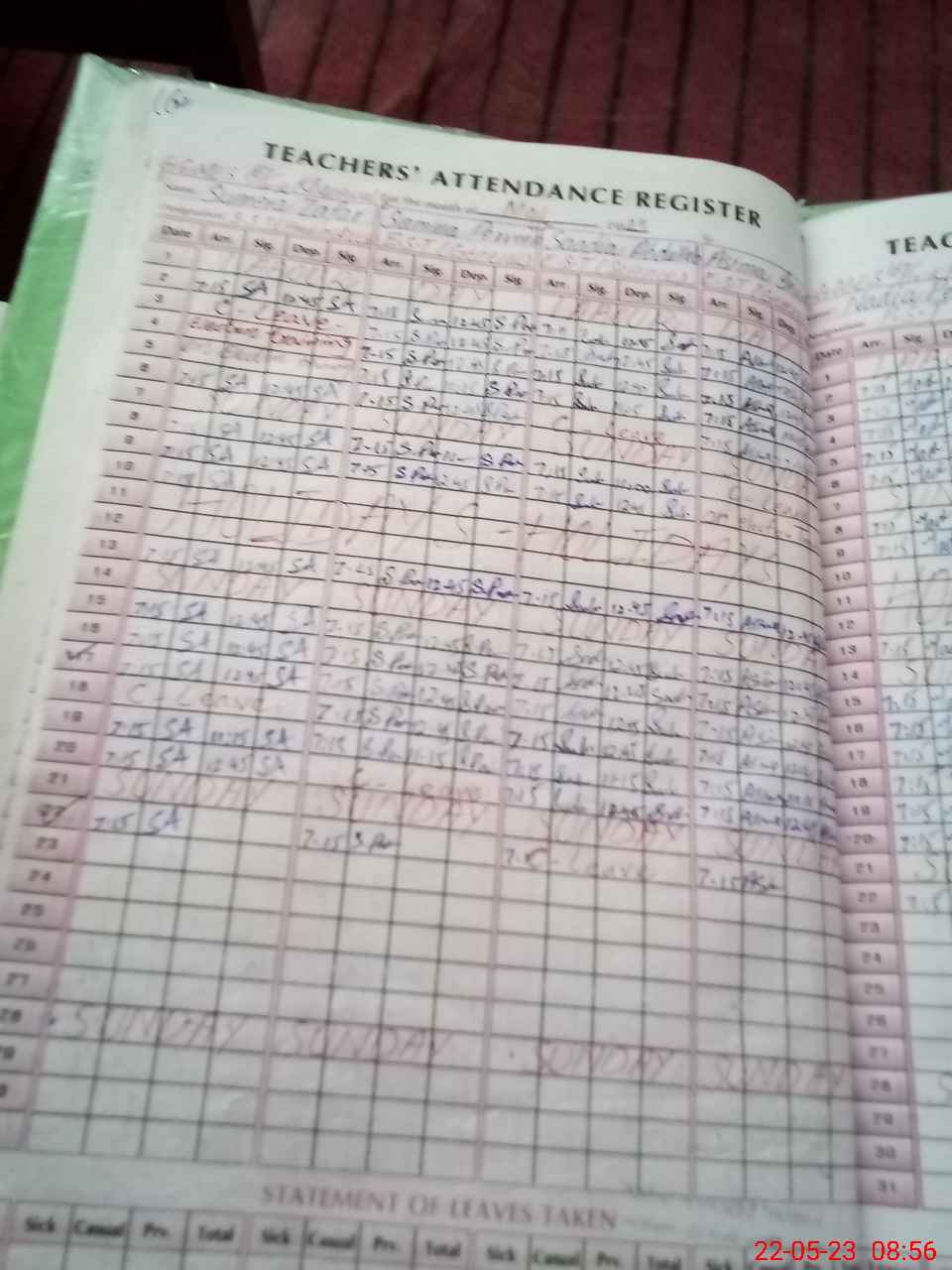 | Leave | Duty | Absent | Maternity | Medical | Ex- Pak |