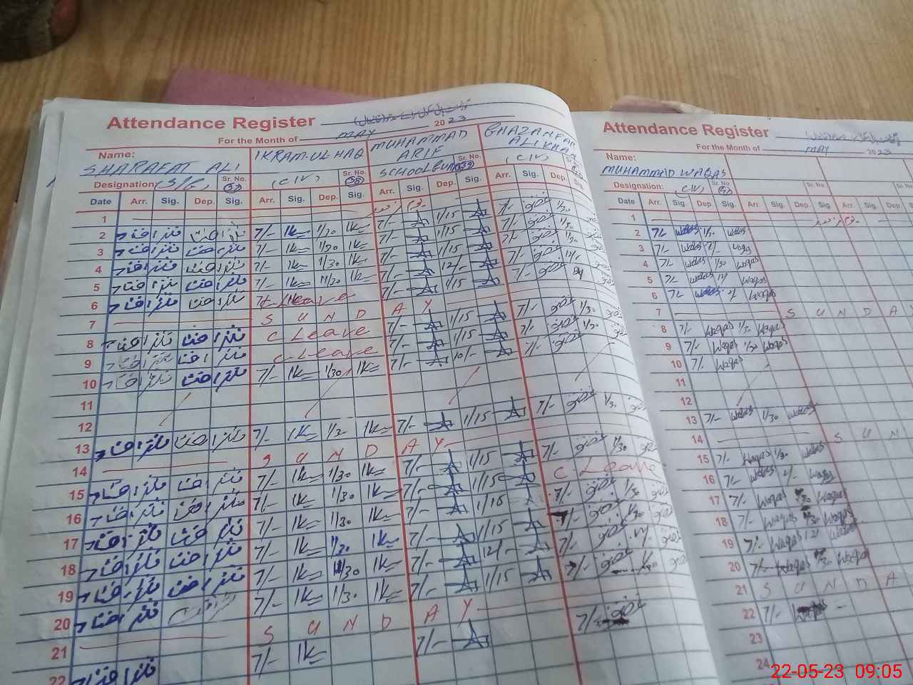 | CNIC | Full Name | Designation | R/C | Absence During Last Calender Month |