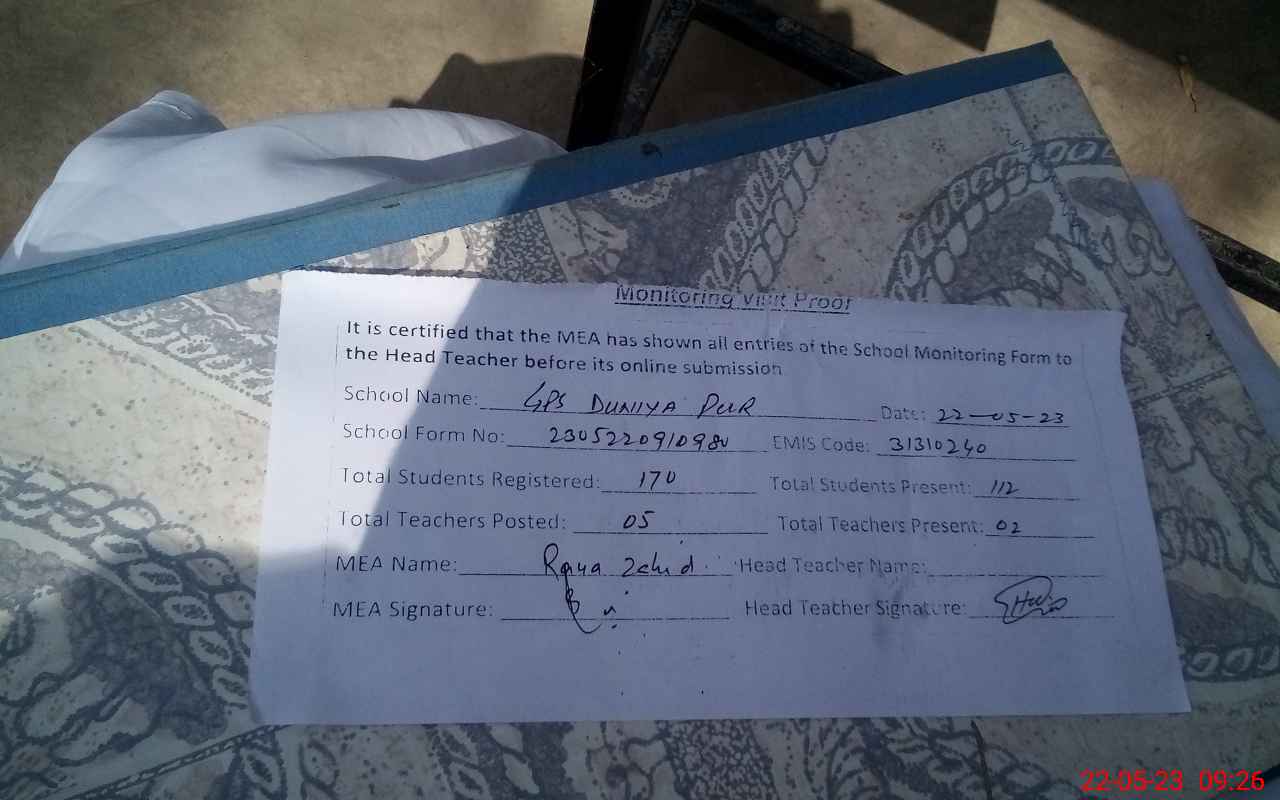 | EMIS Code: 31310240 | Name of School: GPS DUNIA PUR | |||