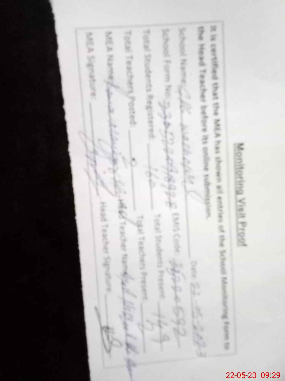 | Attendance Register | Head Teacher | MEA with School | Visit Proof |