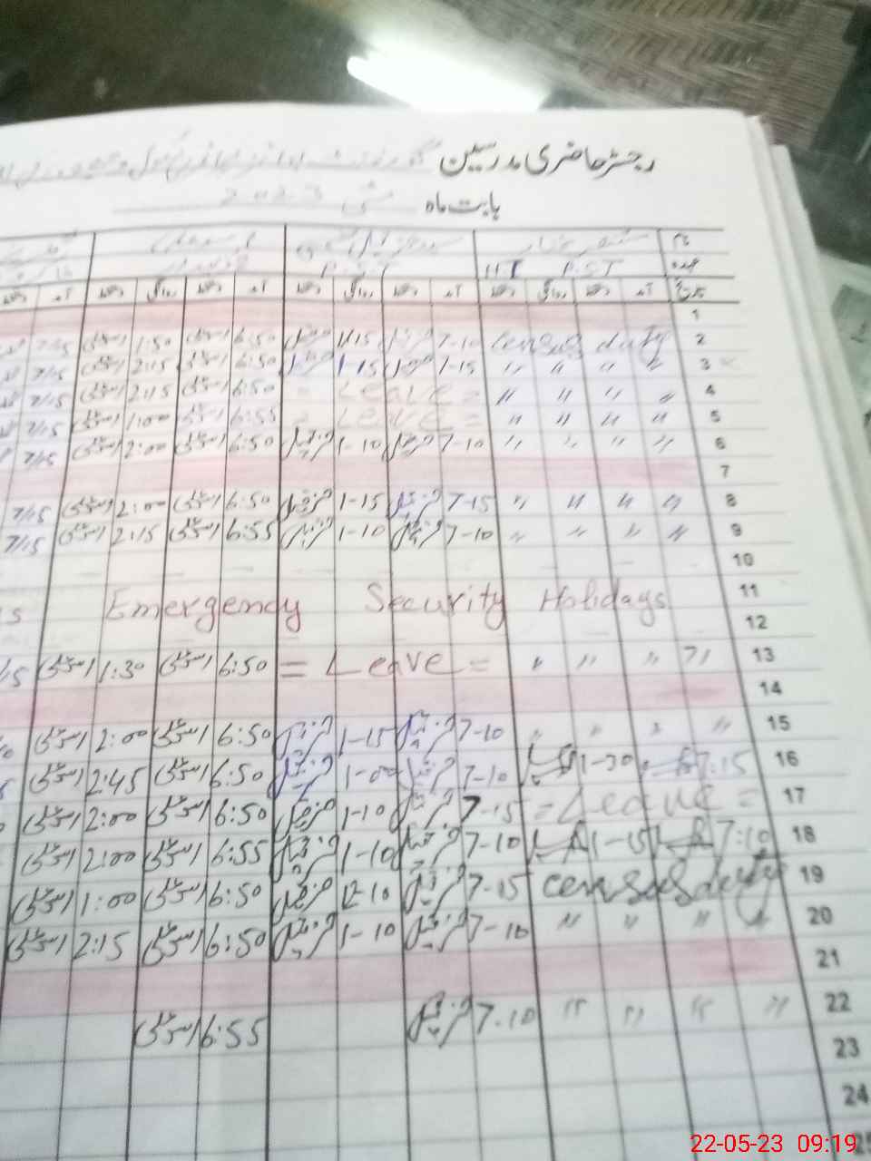 | CNIC | Full Name | Designation | R/C | Absence During Last Calender Month |