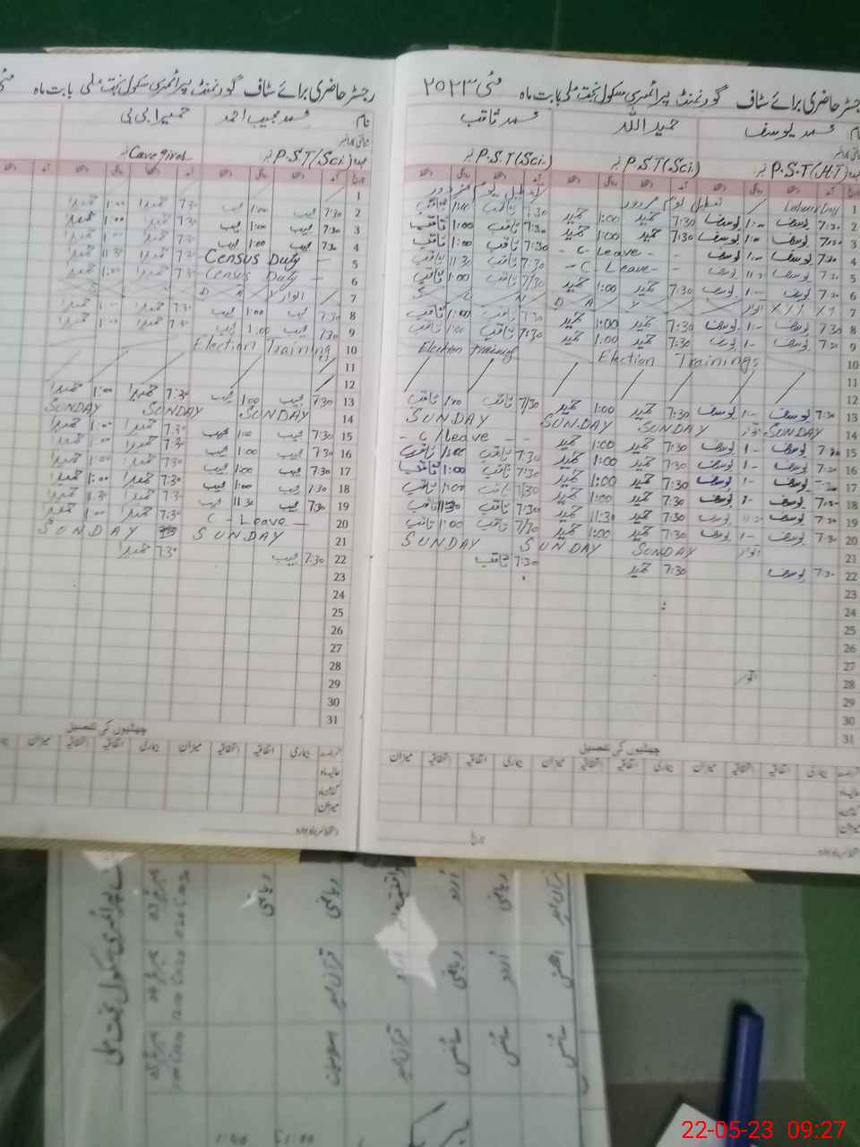 | CNIC | Full Name | Designation | R/C | Absence During Last Calender Month |
