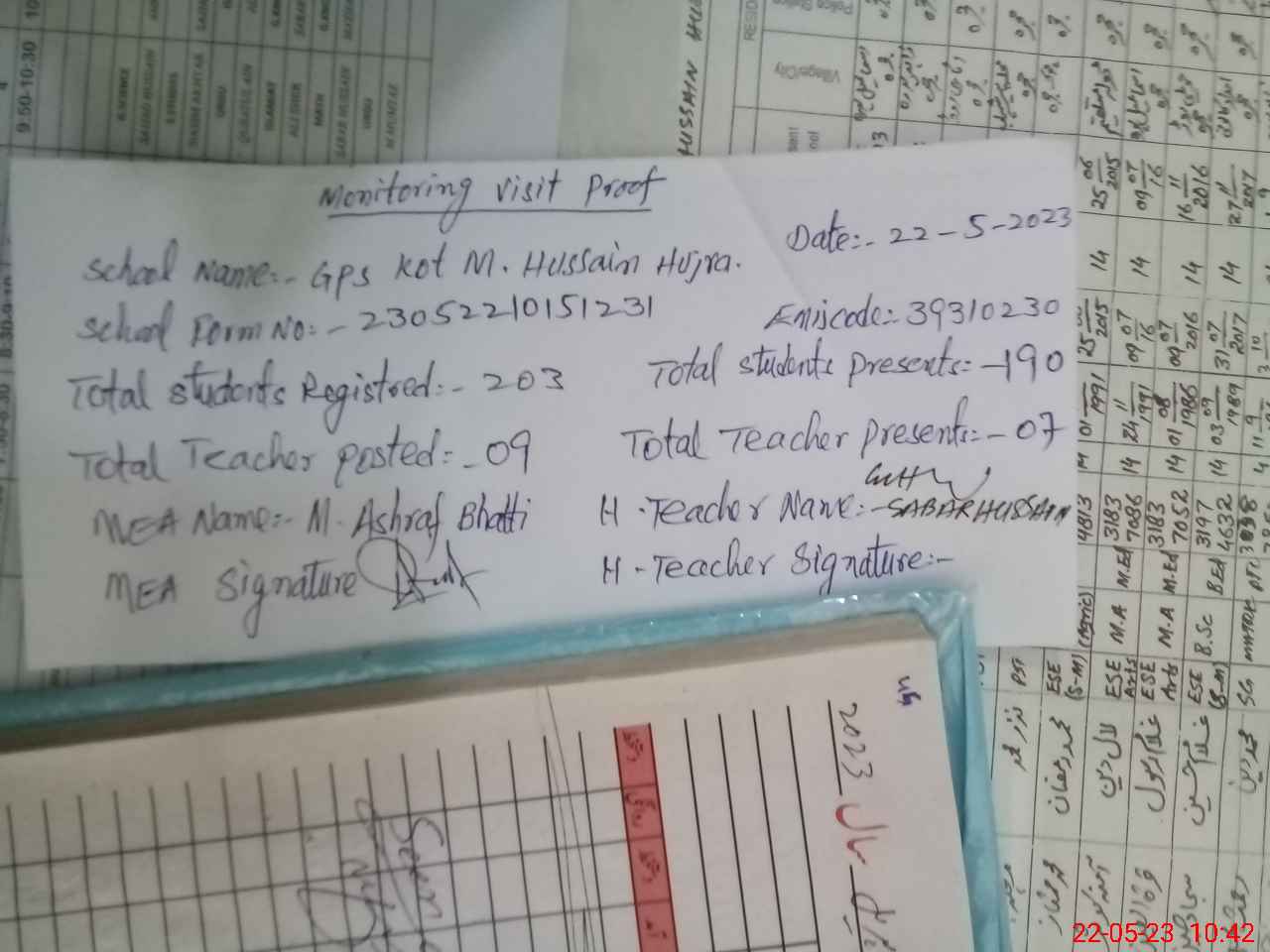 | EMIS Code: 39310230 | Name of School: GPS KOT MUHAMMAD HUSSAIN (HUJRA) | |||