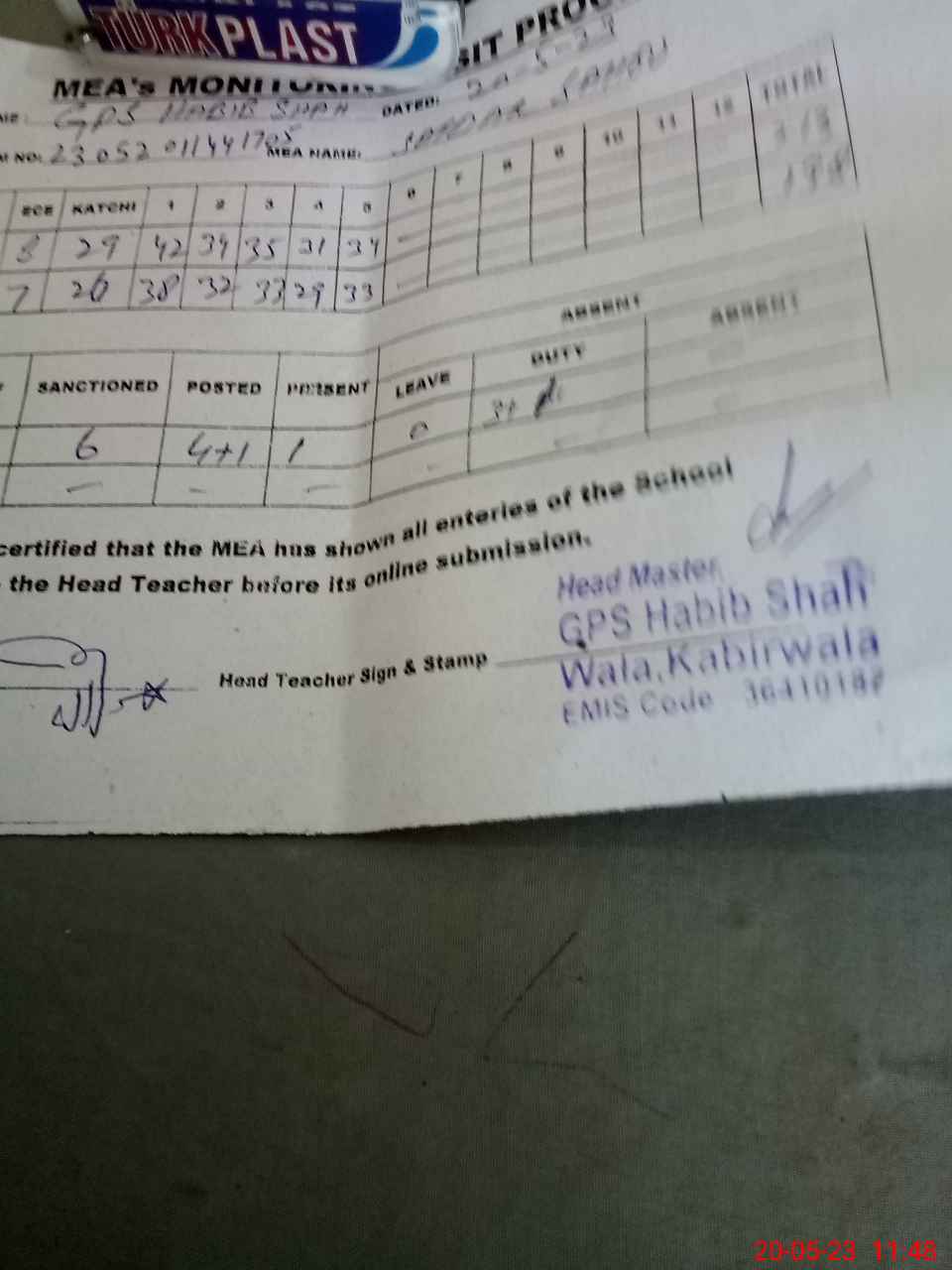 | Attendance Register | Head Teacher | MEA with School | Visit Proof |