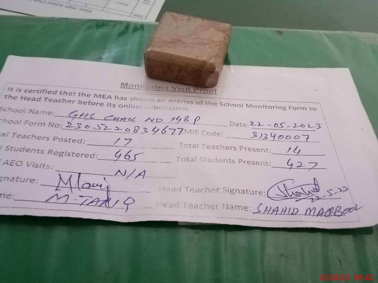 | EMIS Code: 31340007 | Name of School: GHS CHAK NO. 148/P | |||