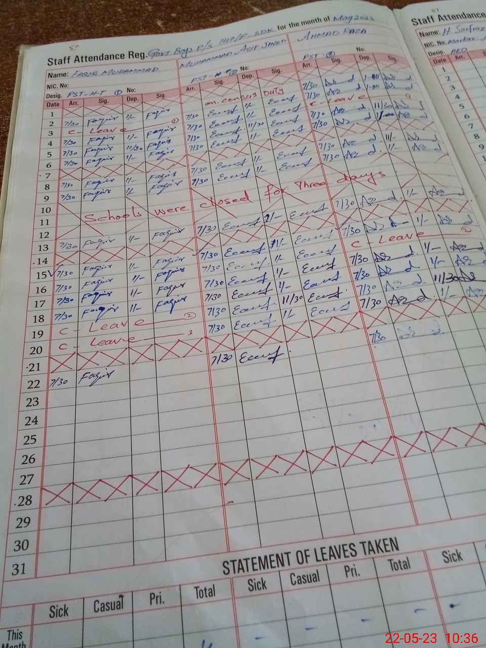 | Leave | Duty | Absent | Maternity | Medical | Ex- Pak |