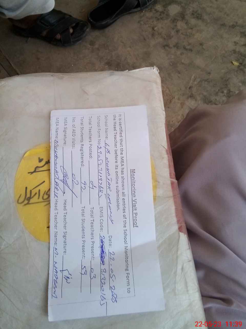 | Attendance Register | Head Teacher | MEA with School | Visit Proof |