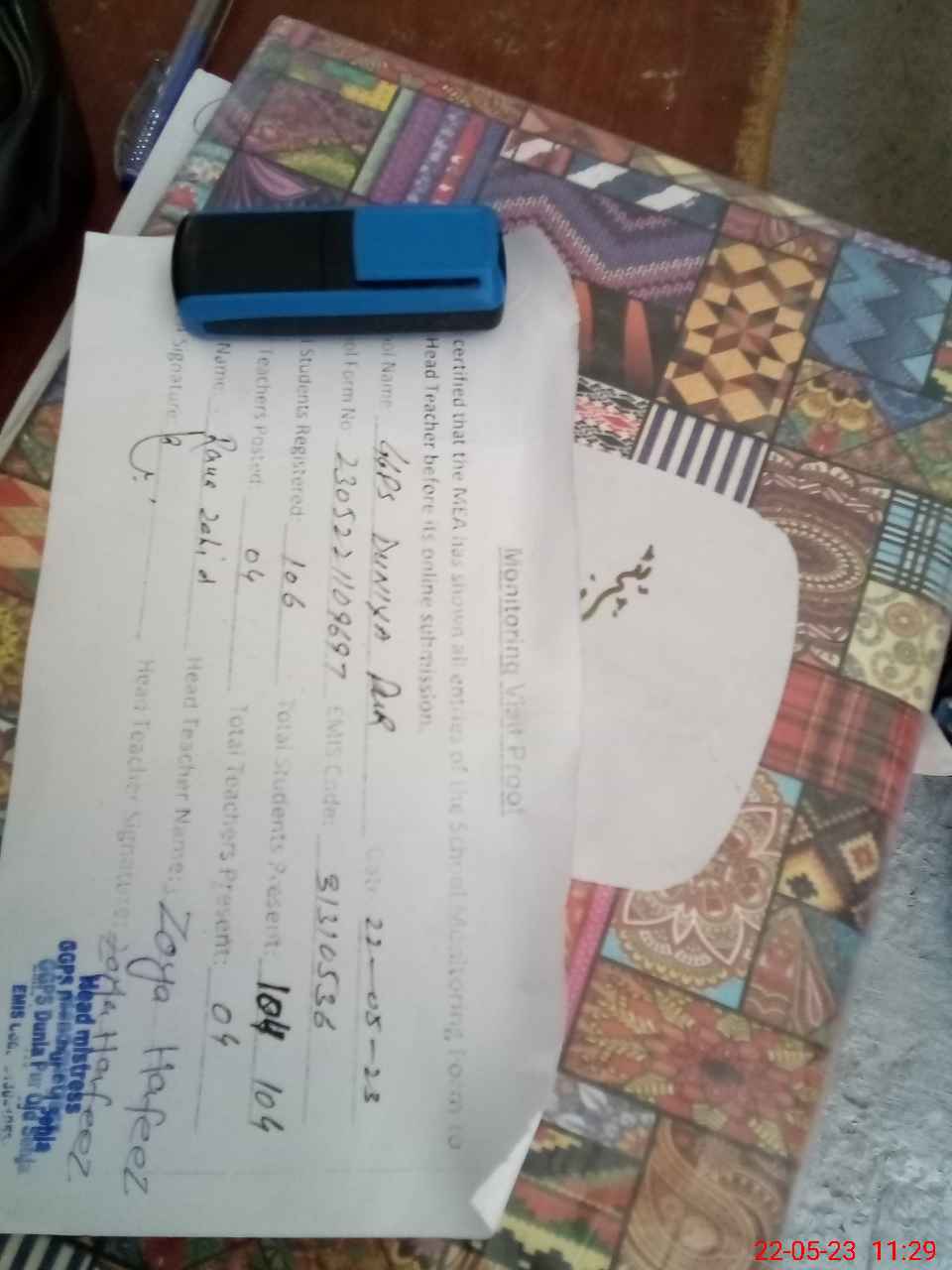 | EMIS Code: 31310536 | Name of School: GGPS DUNIYA PUR (OLD SEHJA) | |||