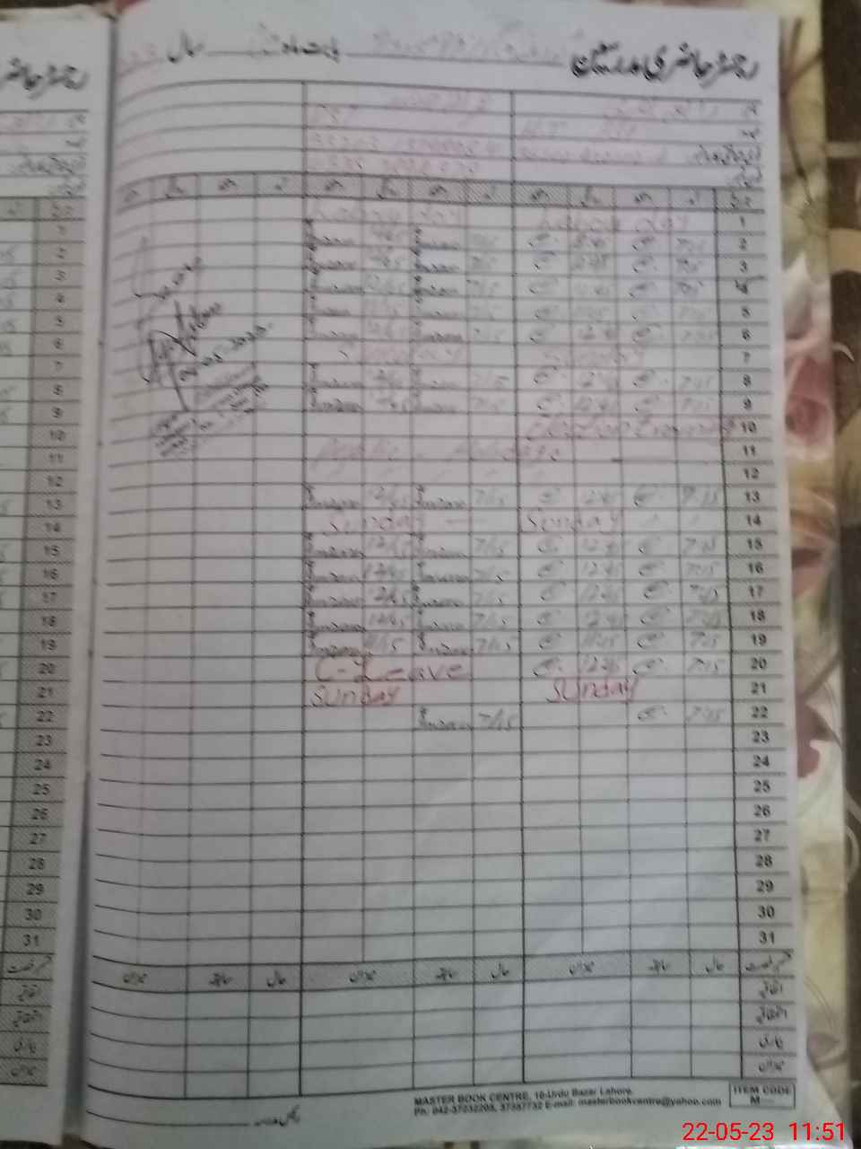 | CNIC | Full Name | Designation | R/C | Absence During Last Calender Month |