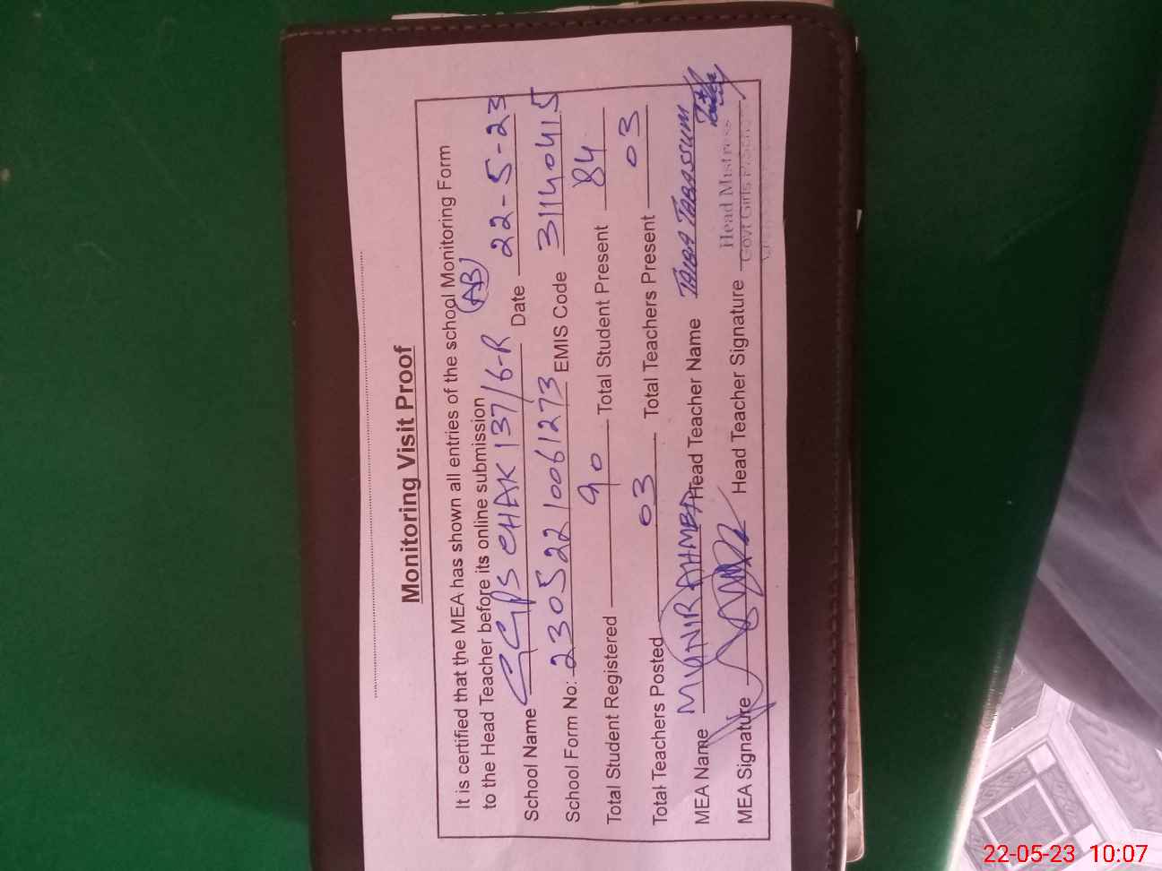 | EMIS Code: 31140415 | Name of School: GGPS CHAK NO. 137/6-R | |||