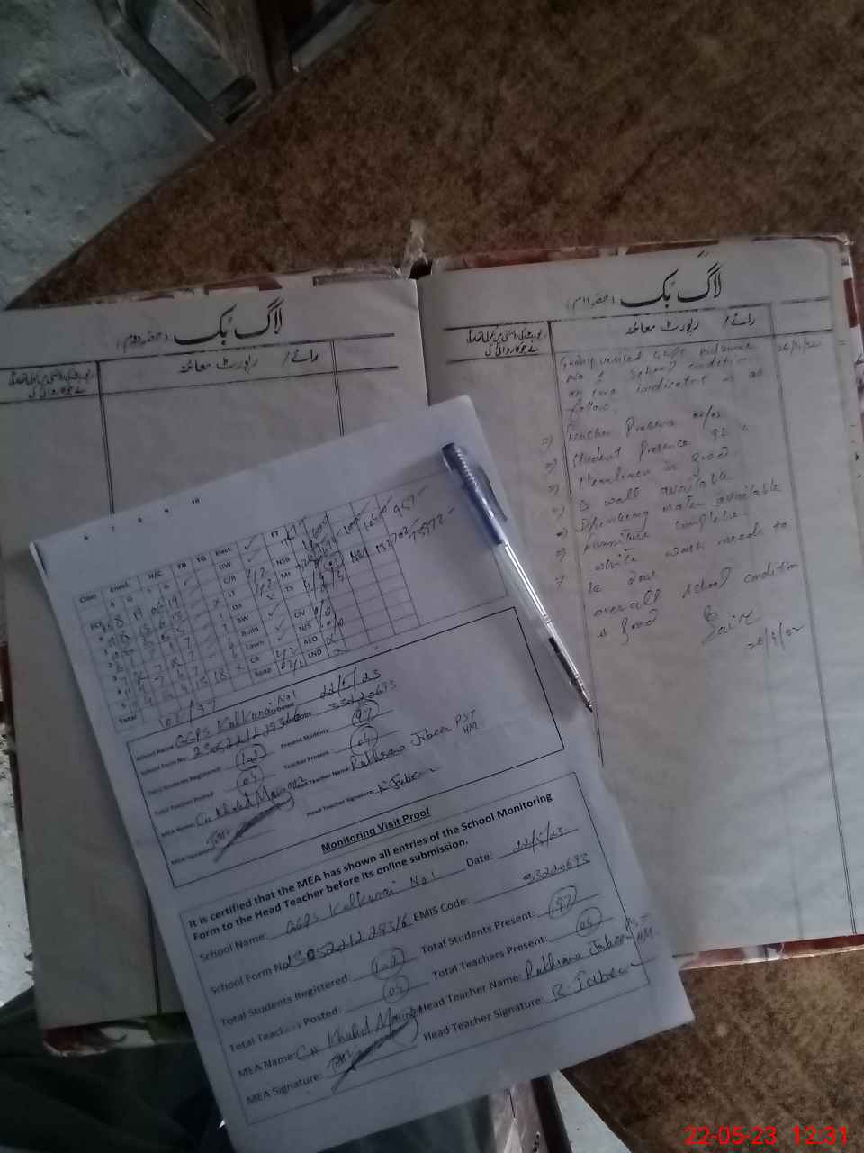 | Attendance Register | Head Teacher | MEA with School | Visit Proof |
