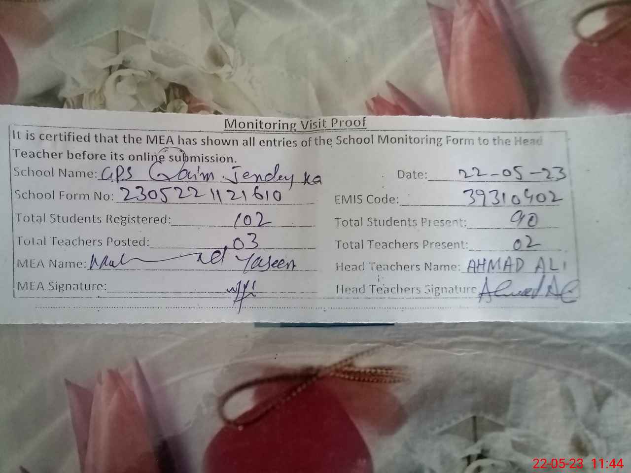 | EMIS Code: 39310402 | Name of School: GPS QAIM JINDE KA | |||