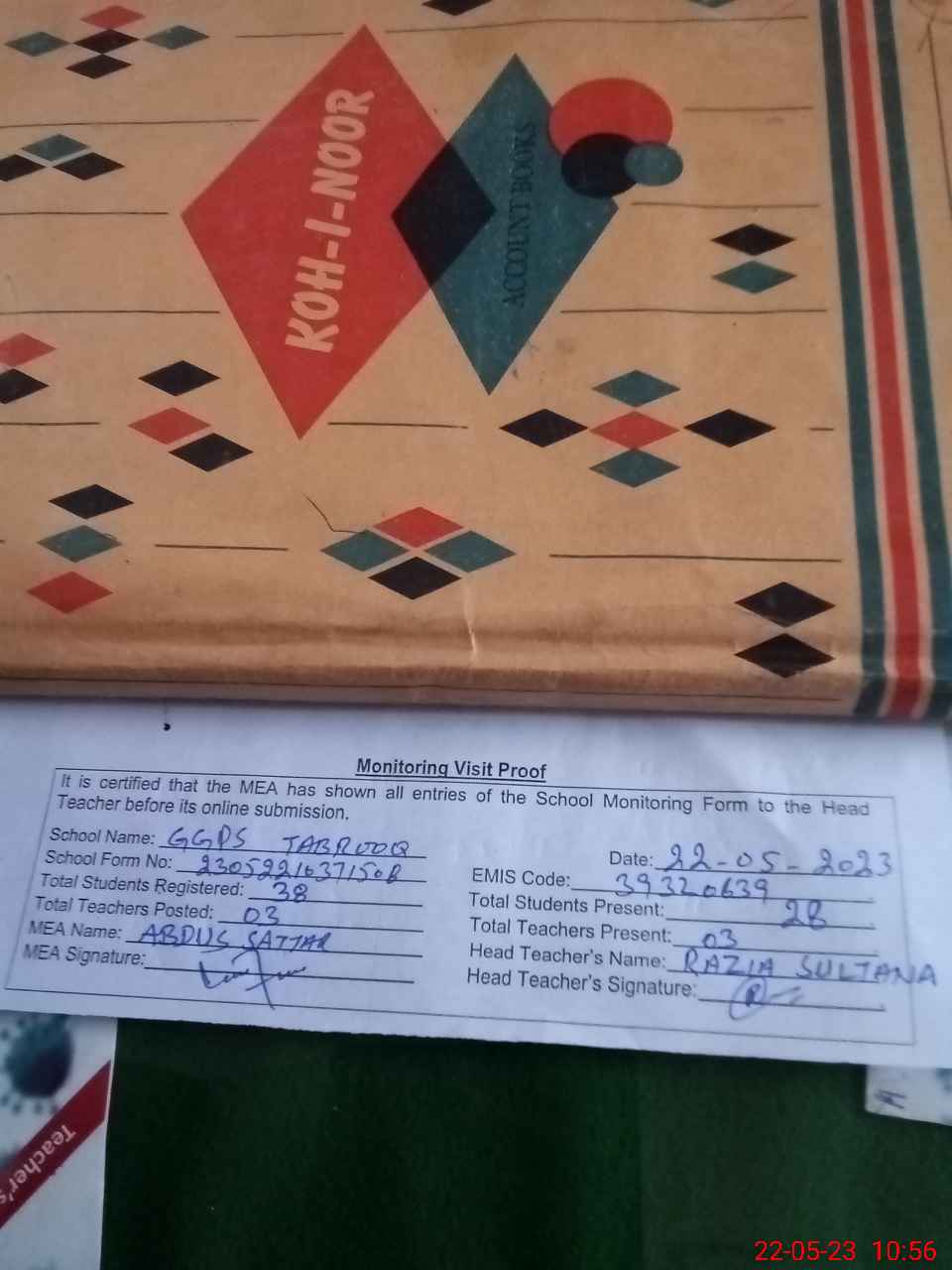 | Attendance Register | Head Teacher | MEA with School | Visit Proof |