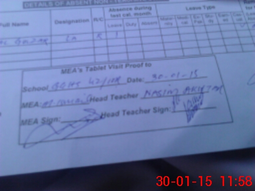 | Attendance Register | Head Teacher | MEA with School | Visit Proof |