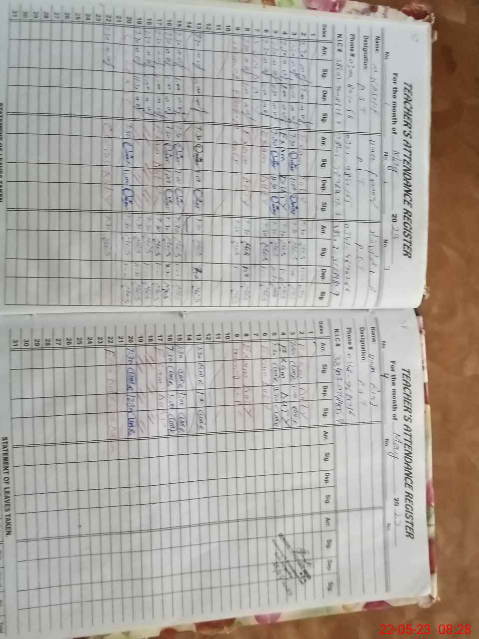 | 38**** | Um**** Ri**** | PST | Regular | 0 | 23 | 0 | 0 | 0 | 0 | 0 | 0 | 0 | Exam Duty |