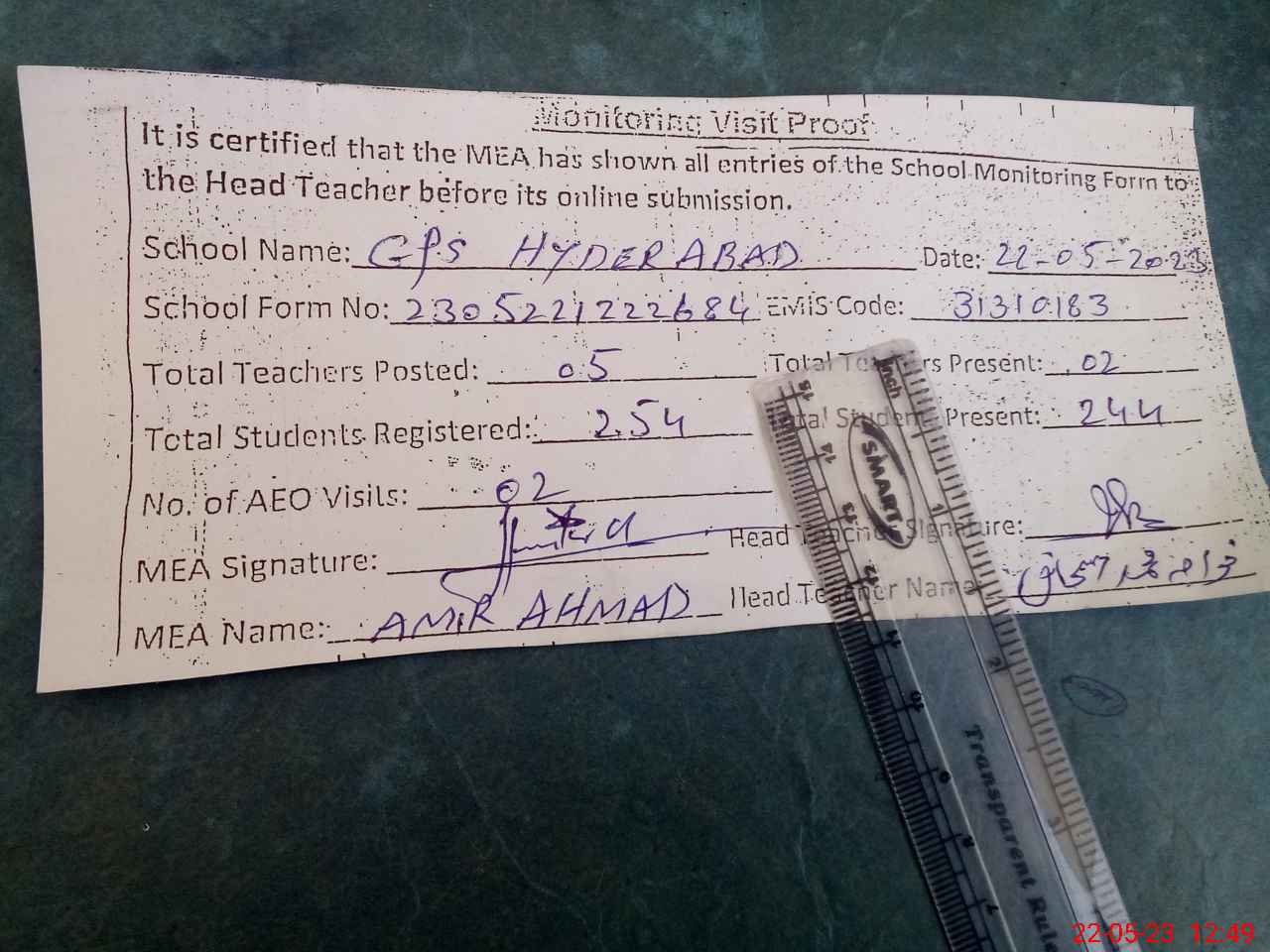 | EMIS Code: 31310183 | Name of School: GPS HYDERABAD | |||