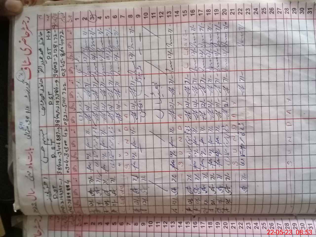 | CNIC | Full Name | Designation | R/C | Absence During Last Calender Month |