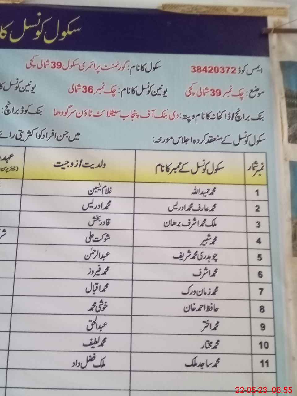 | EMIS Code: 38420372 | Name of School: GPS CHAK NO.39 NB KACHI ABADI | |||