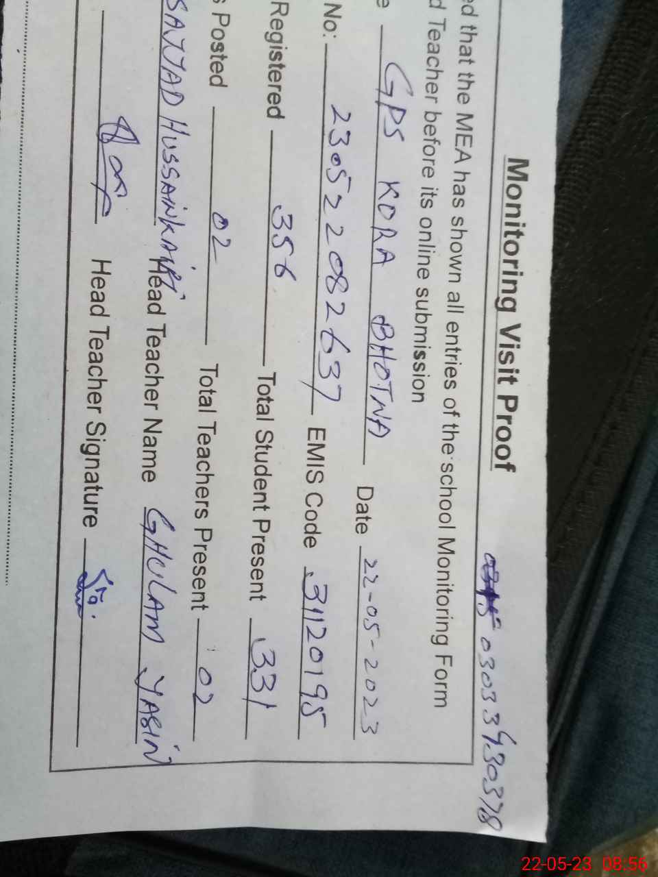 | EMIS Code: 31120195 | Name of School: GPS KORRA BHOOTNA | |||