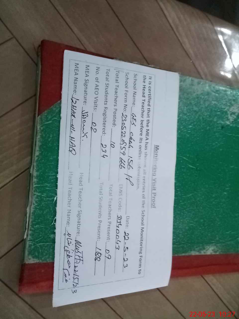 | Certified that this School was Inspected by the Undersigned MEA/DMO Today and the Information Stated Above is as Per Record. | |||||
