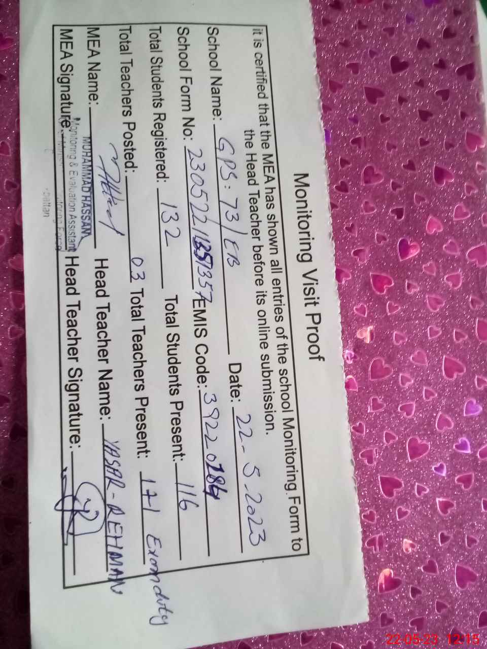 | EMIS Code: 39220184 | Name of School: GPS 73 EB P/O CHAK NO 75/EB | |||