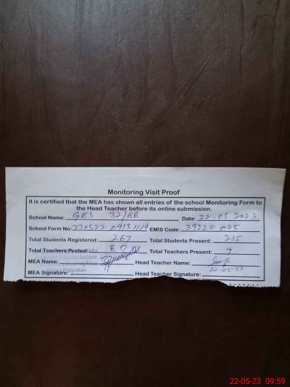 | EMIS Code: 39220045 | Name of School: GES CHAK NO. 32 / EB | |||