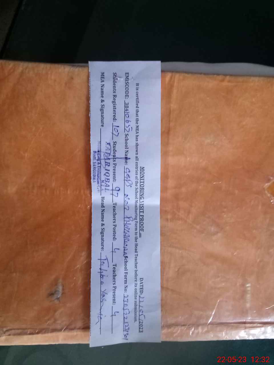 | Attendance Register | Head Teacher | MEA with School | Visit Proof |