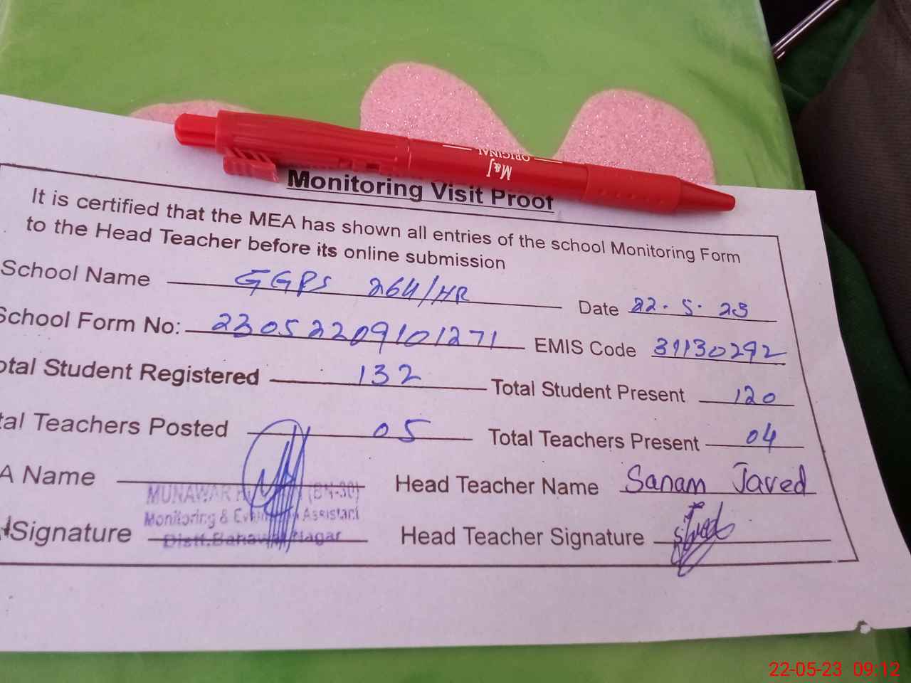 | EMIS Code: 31130292 | Name of School: GMPS CHAK NO. 264 HR W | |||