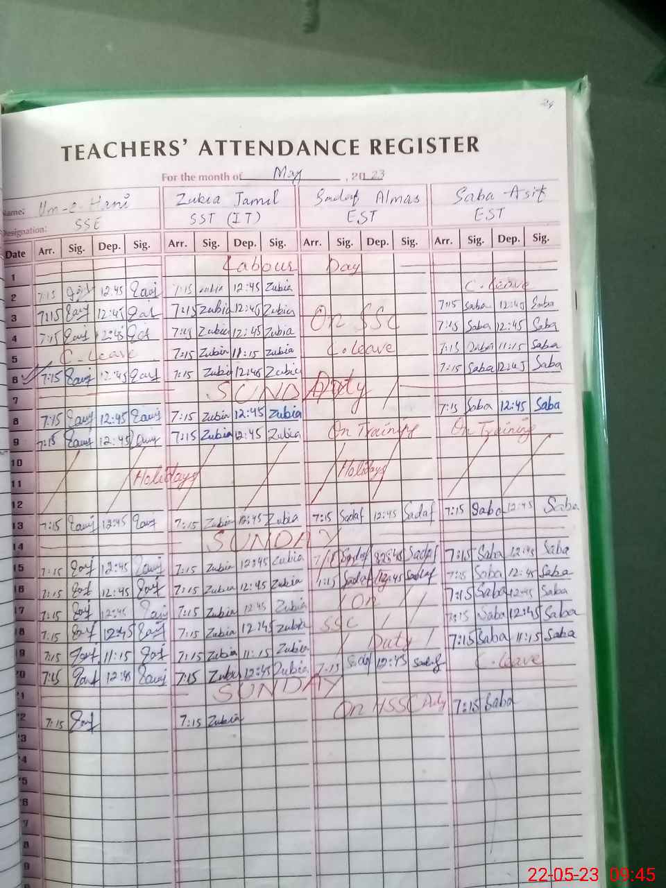 | 35**** | Sa**** Al**** | Regular | 0 | 29 | 0 | 0 | 0 | 0 | 0 | 0 | 0 | Exam Duty | |