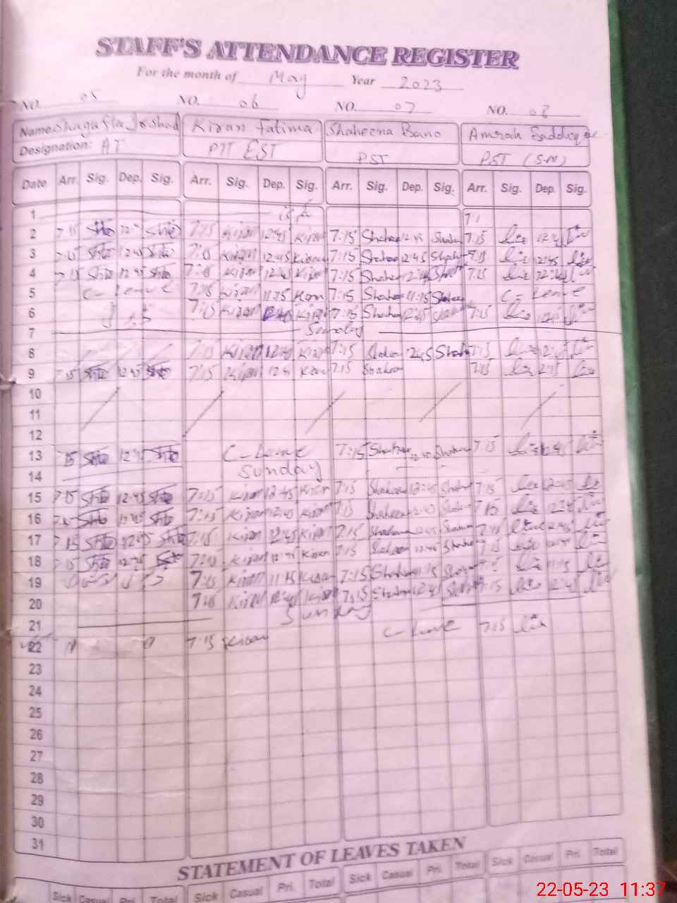 | 35**** | Sh**** Ir**** | Regular | 0 | 17 | 0 | 0 | 0 | 0 | 0 | 0 | 0 | Absent (Un-Authorized) | |