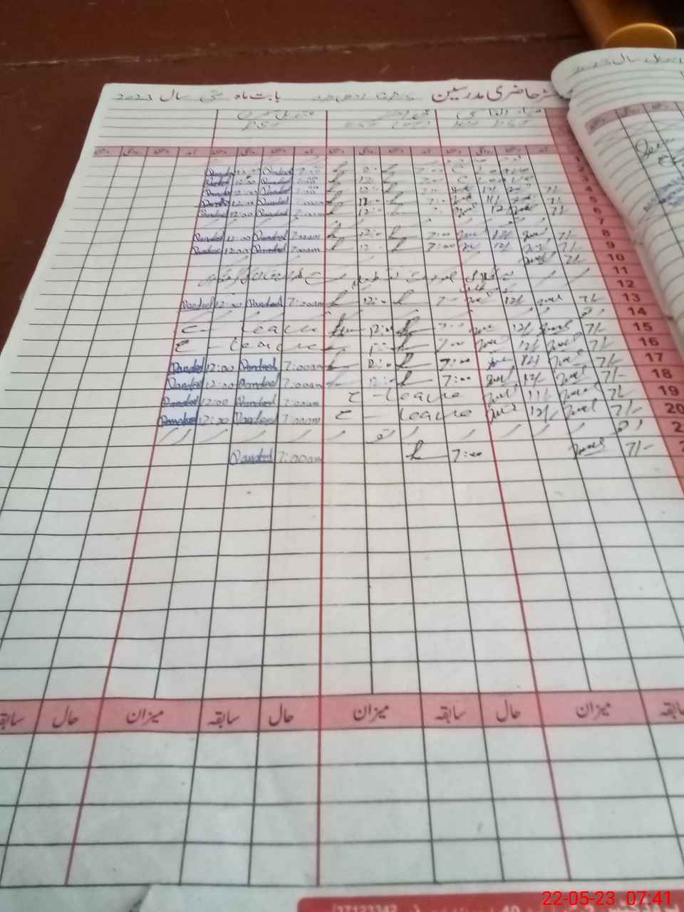| CNIC | Full Name | Designation | R/C | Absence During Last Calender Month |