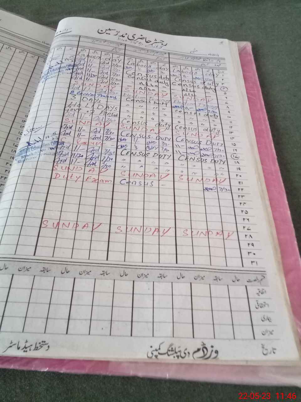 | 31**** | Mu**** Sa**** Lo**** | Contract | 0 | 0 | 0 | 0 | 0 | 0 | 0 | 0 | 0 | Exam Duty | |