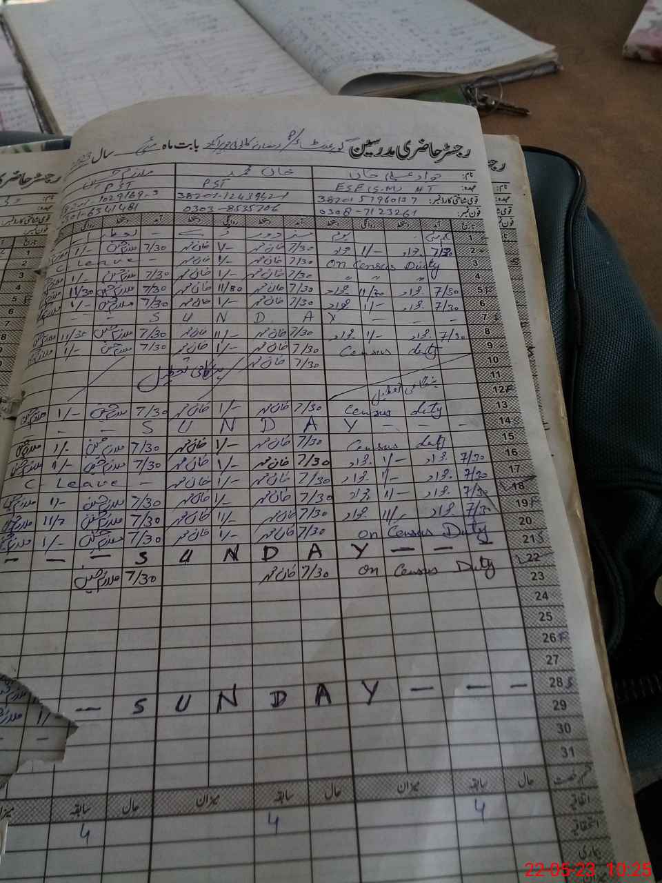 | 38**** | Wa**** Ul**** | Contract | 1 | 2 | 0 | 0 | 0 | 0 | 0 | 0 | 1 | Exam Duty | |