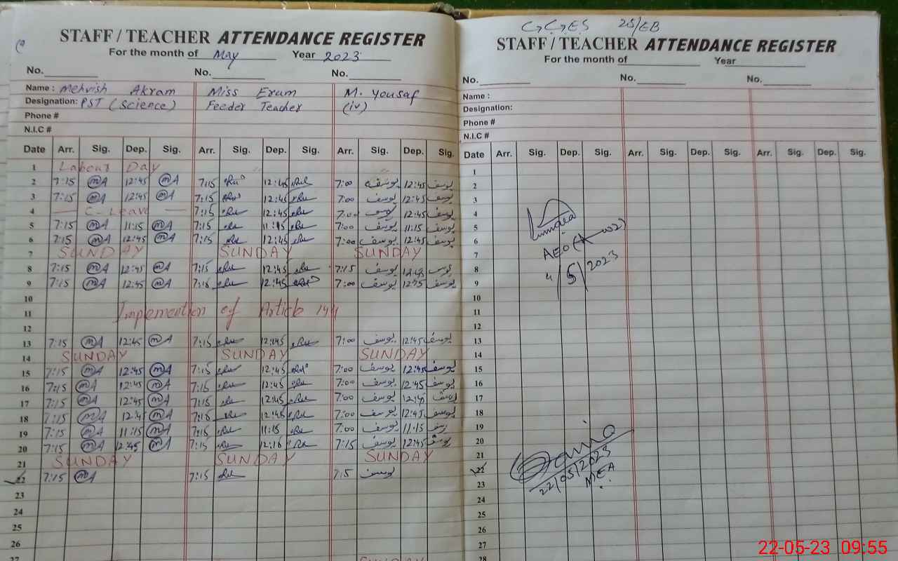 | Name: KA**** FI**** Designation: (School Headmaster's/Headmistress's) SSE (GENERAL) Phone/Cell Number: 03**** |