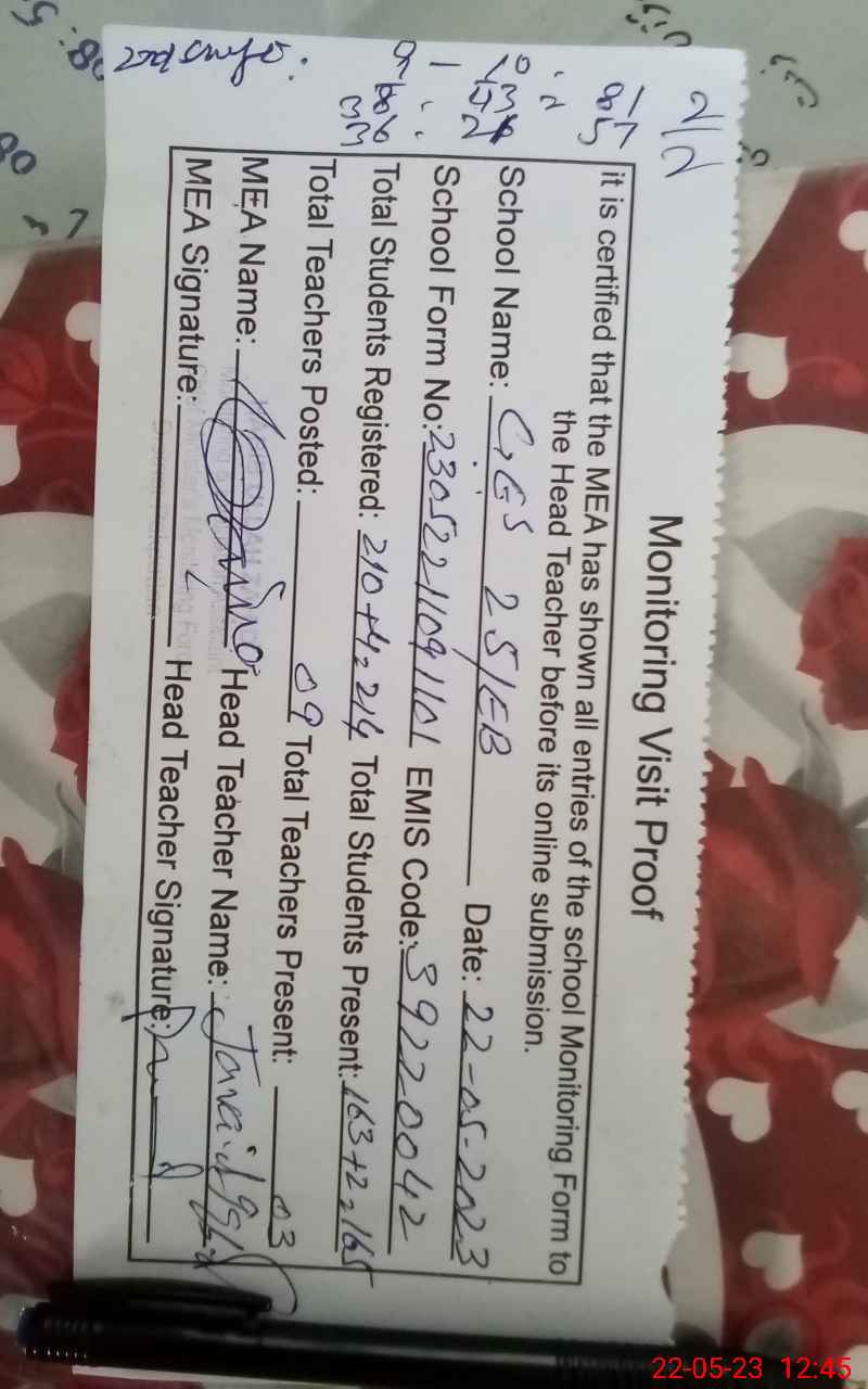 | EMIS Code: 39220042 | Name of School: GES CHAK NO. 25 / EB | |||