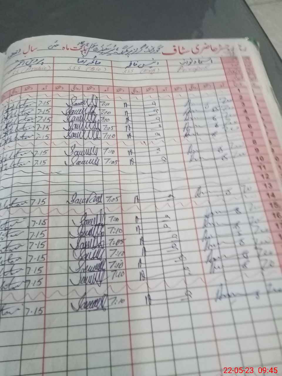| CNIC | Full Name | Designation | R/C | Absence During Last Calender Month |