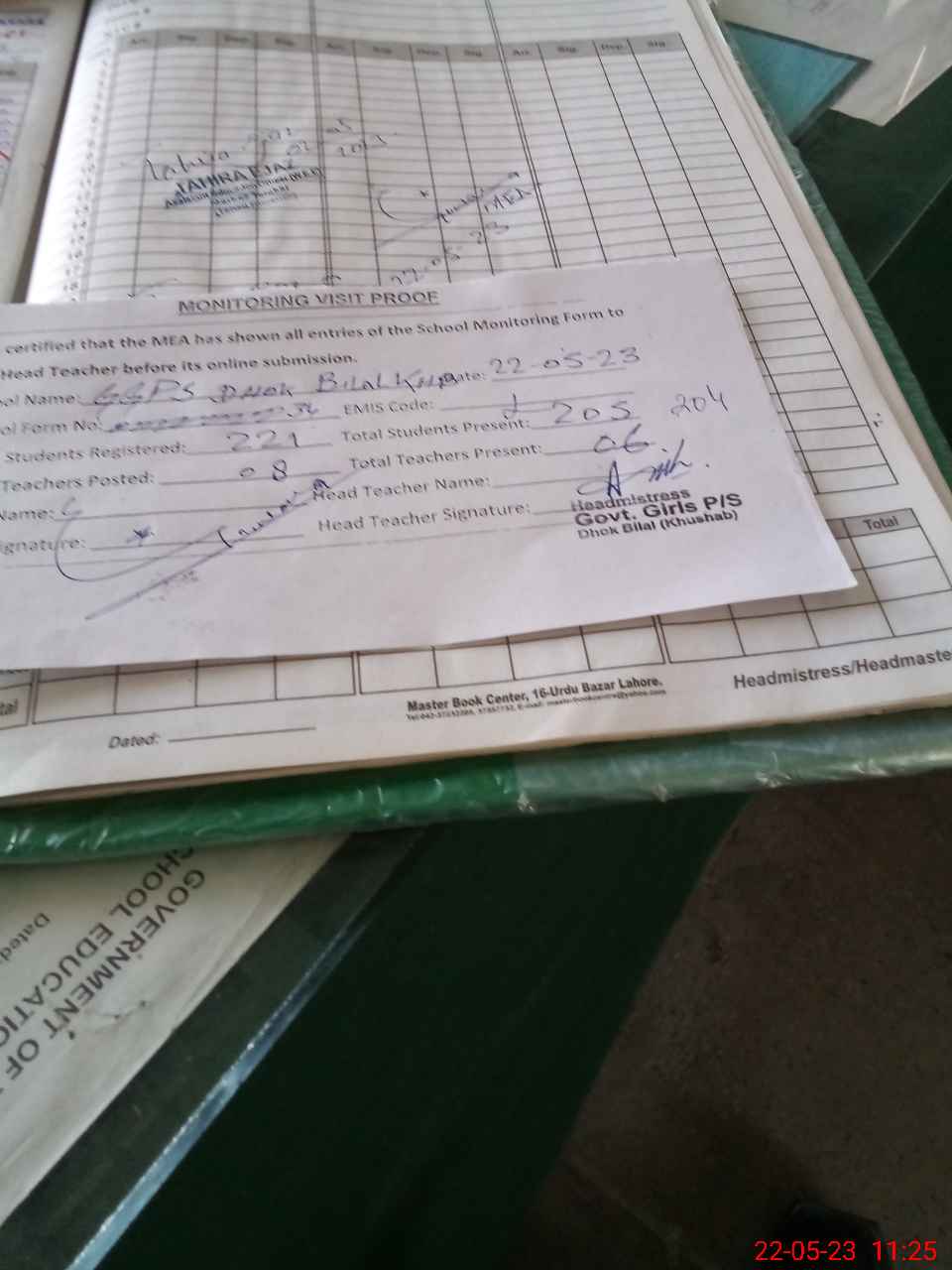 | EMIS Code: 38210523 | Name of School: GGPS DHOK BALAL KHB | |||