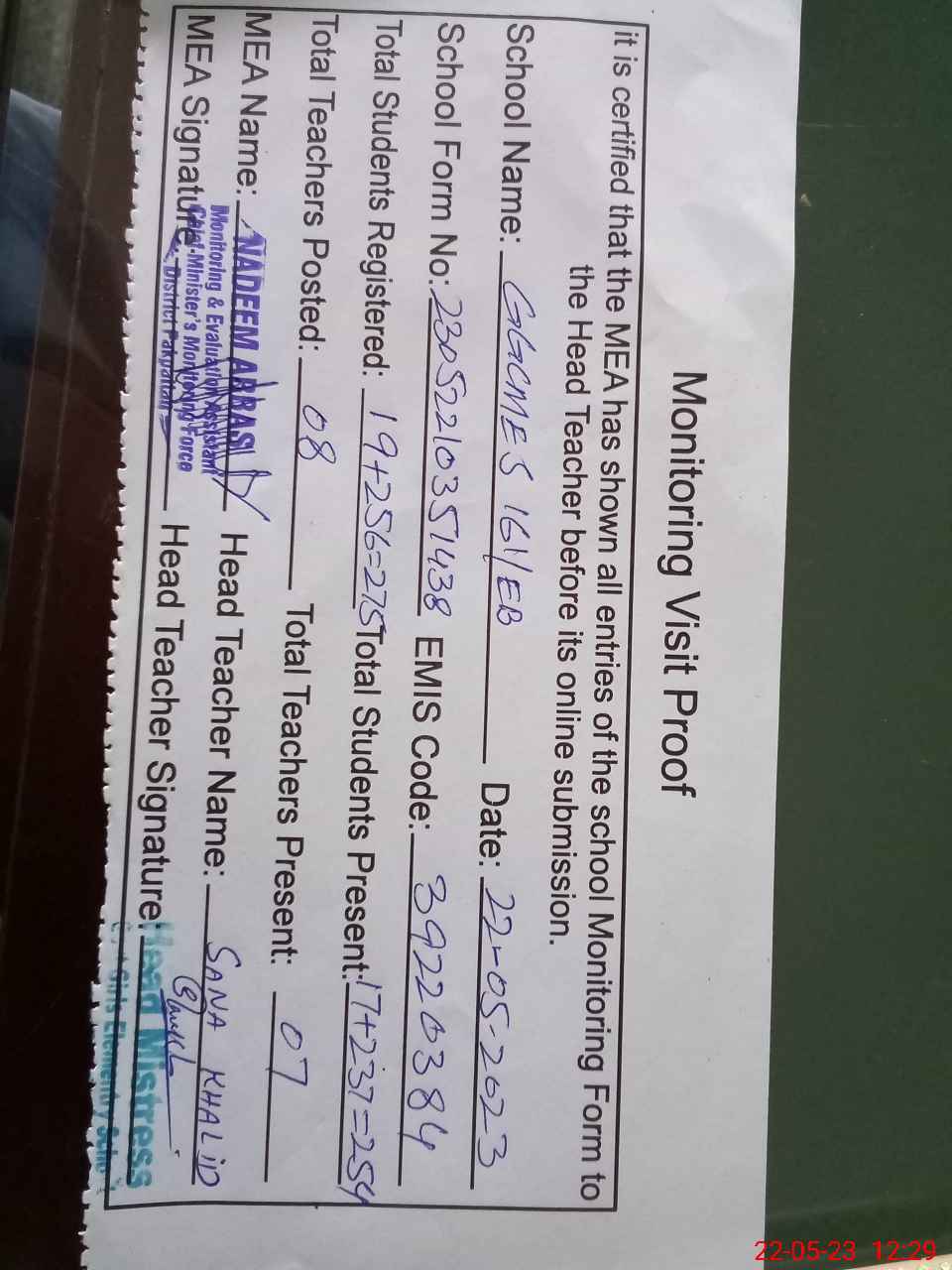 | EMIS Code: 39220384 | Name of School: GGCMES 161 EB ARIFWALA | |||