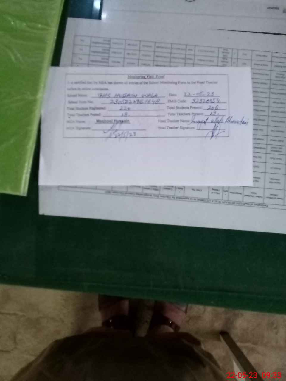 | Certified that this School was Inspected by the Undersigned MEA/DMO Today and the Information Stated Above is as Per Record. | |||||