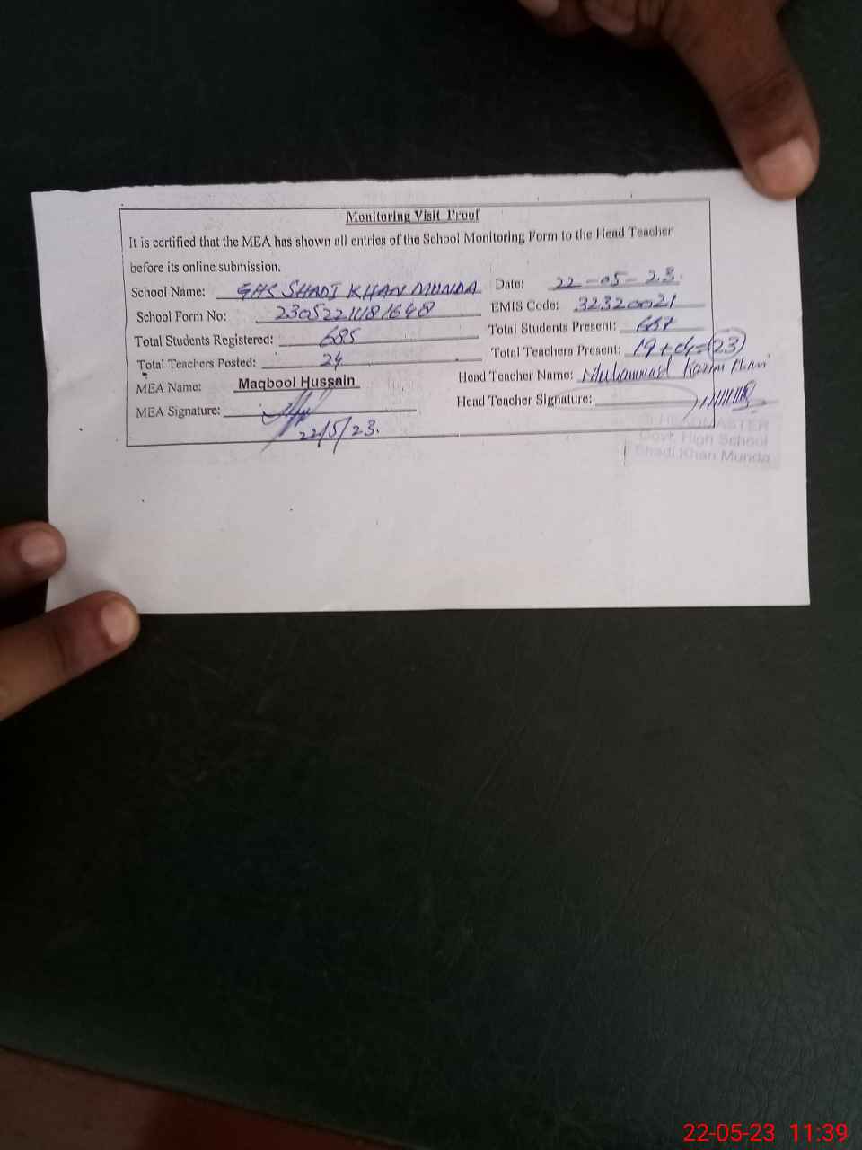 | EMIS Code: 32320021 | Name of School: GHS SHADI KHAN MUNDA | |||
