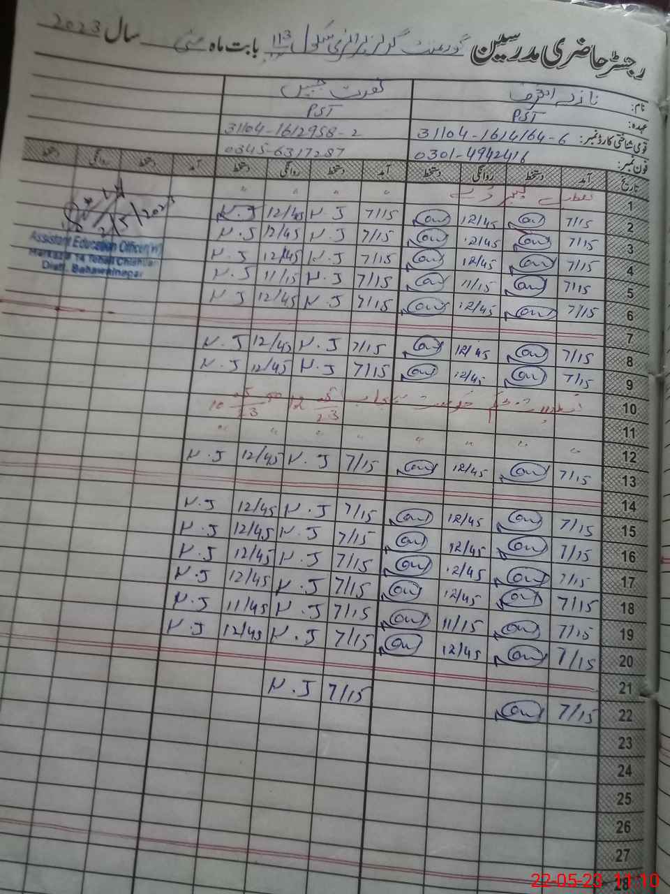| Name: Na**** As**** Designation: (School Headmaster's/Headmistress's) Pst Phone/Cell Number: 03**** |