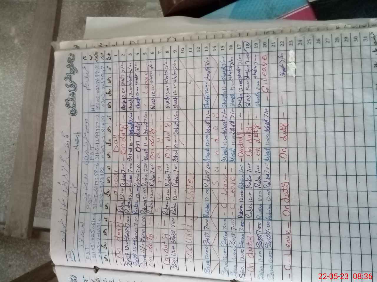| 31**** | Is**** Pa**** | PST | Regular | 2 | 10 | 0 | 0 | 0 | 0 | 0 | 0 | 2 | Exam Duty |