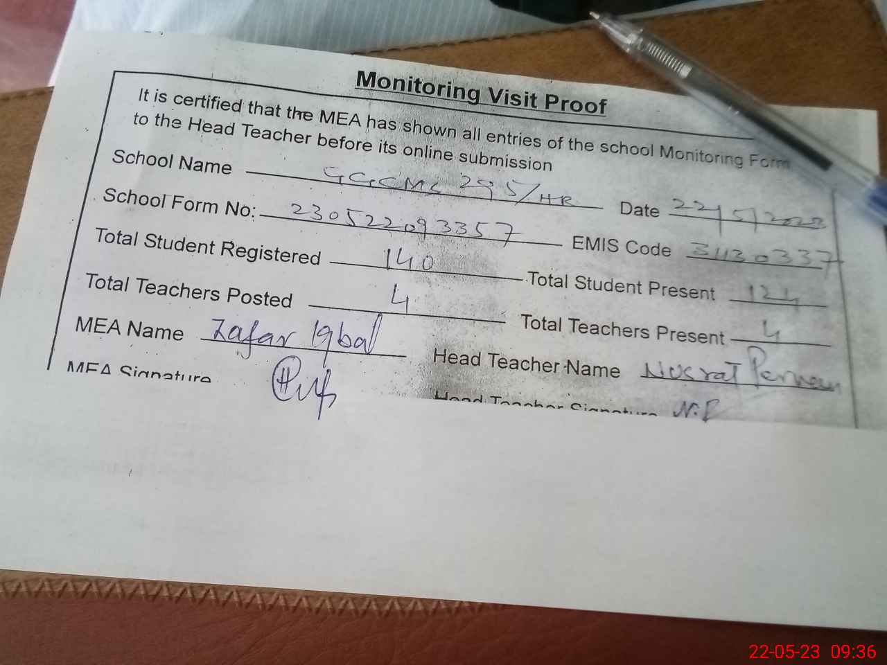 | Monitoring Date: 22-05-2023 | Start Time: 22-05-2023 09:19 AM | End Time: 22-05-2023 09:41 AM | Name of MEA: Za**** Iq**** BN**** | |